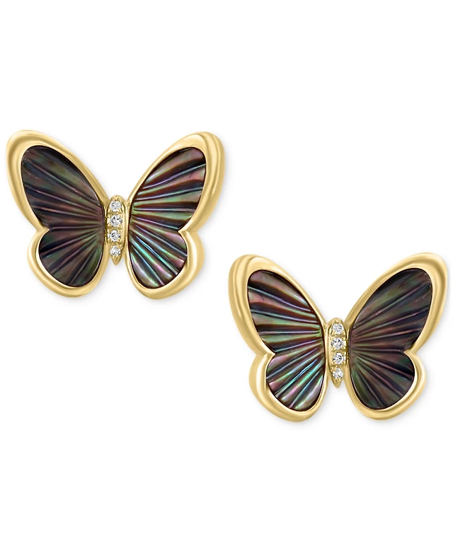 Marquise Onyx (5 x 2-1/2 mm) & Diamond Accent Butterfly Stud Earrings in 14k Yellow Gold
