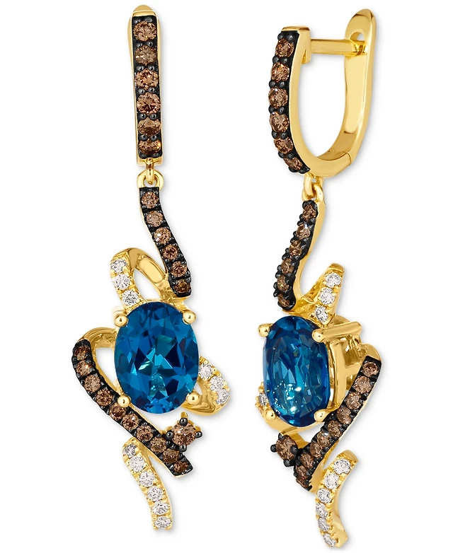 Le Vian Chocolatier Deep Sea Blue Topaz (2-1/2 ct. t.w.) & Diamond (1/2 ct. t.w.) Drop Earrings in 14k Rose Gold