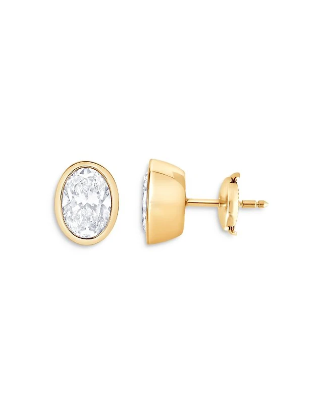 Certified Lab Grown Diamond Oval Bezel Stud Earrings 18K Yellow Gold