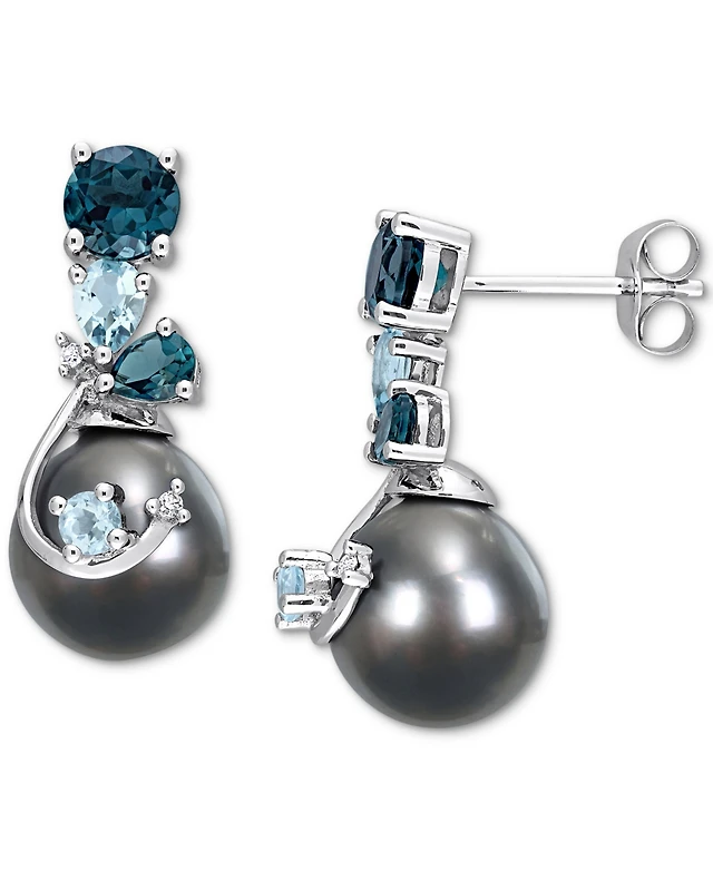 Cultured Freshwater Pearl (9mm), Multi-Sapphire (1-5/8 ct. t.w.) & Diamond (1/8 ct. t.w.) Drop Earrings in 14k White Gold