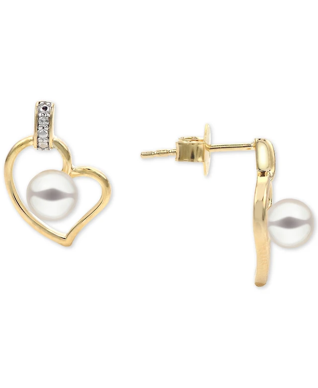 Cultured Golden South Sea Pearl (9mm) & Diamond Heart (1/10 ct. t.w.) Drop Earrings in 14k Gold