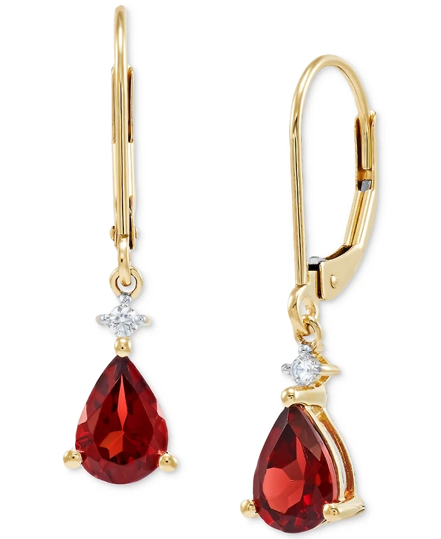 Effy Garnet (2-3/8 ct. t.w.) & Diamond Accent Small Hoop Earrings in 14k Yellow Gold, 0.75"