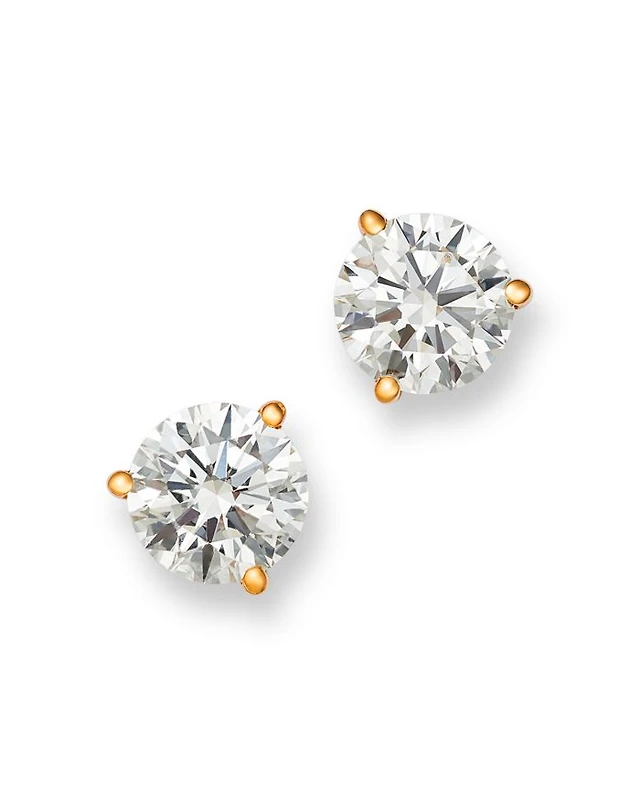 Certified Lab Grown Diamond Stud Earrings 14K Yellow or White Gold, 3.0 tcw