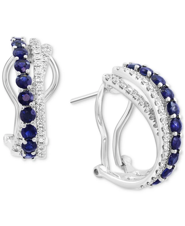 Effy Sapphire (2-3/4 ct. t.w.) & Diamond (3/8 ct. t.w.) Charm Hoop Earrings in 14k Yellow Gold