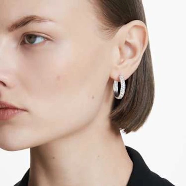 Eternity hoop earrings, Lab-grown diamonds 0.1 ct tw, Round shape, Small, 14K white gold by SWAROVSKI