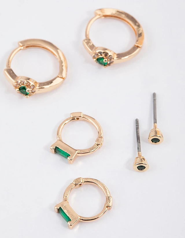 Gold Plated Cubic Zirconia Threader & Huggie Earrings 4-Pack