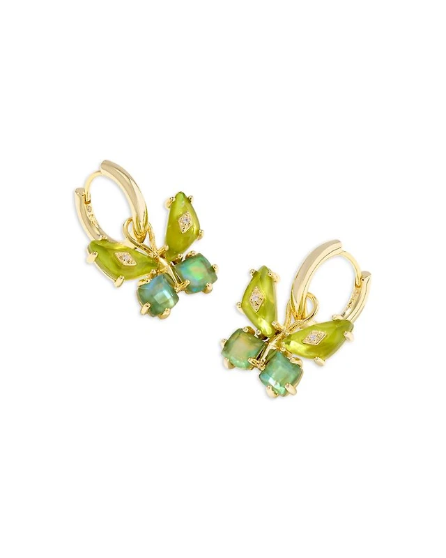 14K Yellow Gold Emerald Huggie Hoop Earrings