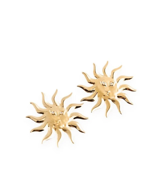 14K Yellow Gold Evil Eye Protection Stud Earrings with Diamonds, 0.07 tcw