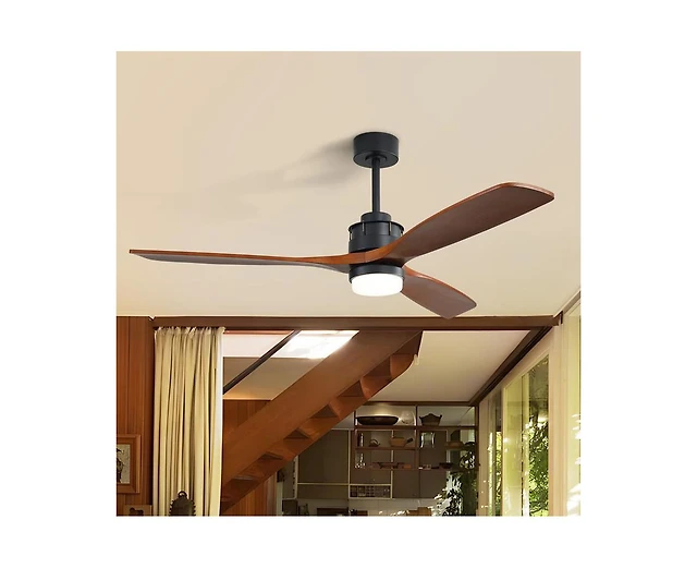 52-inch Modern Black 3 Blades Walnut Ceiling Fan with 6 Speed Remote control and Timing and Forward Reverse Rotation Function for Indoor