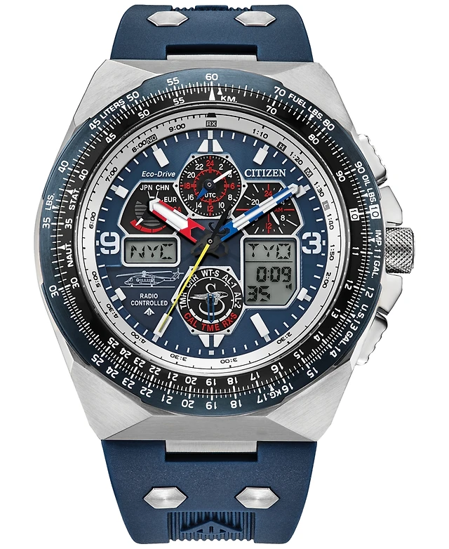 Citizen Eco-Drive Men's Analog-Digital Chronograph Promaster Blue Angels Skyhawk A-t Blue Leather Strap Watch 46mm