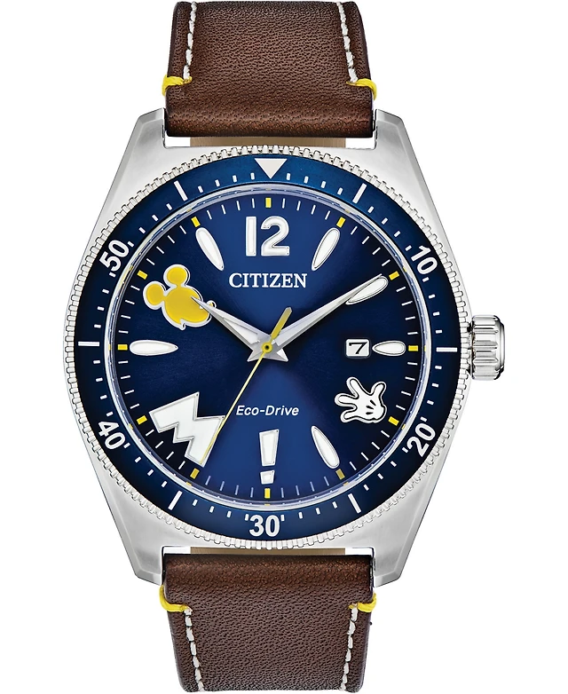 Disney by Citizen Mickey Aviator Brown Leather Strap Watch 40mm