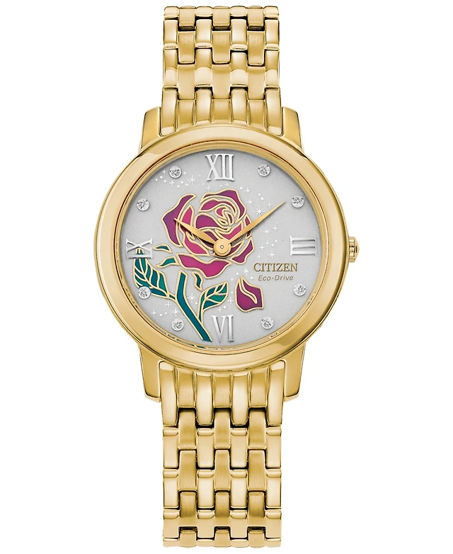 Disney by Citizen Eco-Drive Women's Belle Gold-Tone Stainless Steel Bracelet Watch 30mm