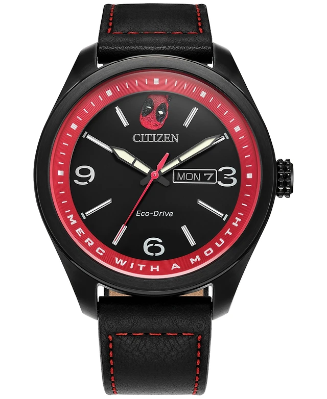 Citizen Eco-Drive Men's Marvel Deadpool Returns Black Leather Strap Watch 43mm