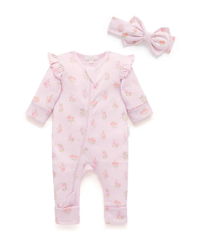 Rare Editions Baby Girls Daisy-Print Eyelet Romper & Headband, 2 Piece Set