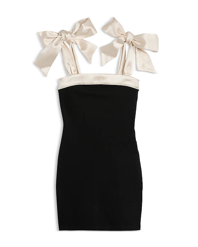 KatieJnyc Girls' Dress with Satin Tie Shoulders - Big Kid