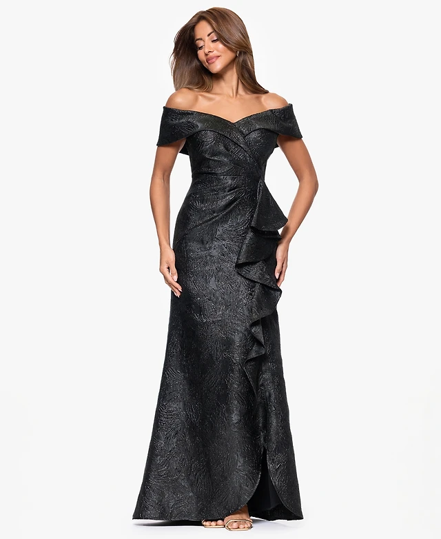 Betsy and Adam Women's Long Off-the-Shoulder Dress