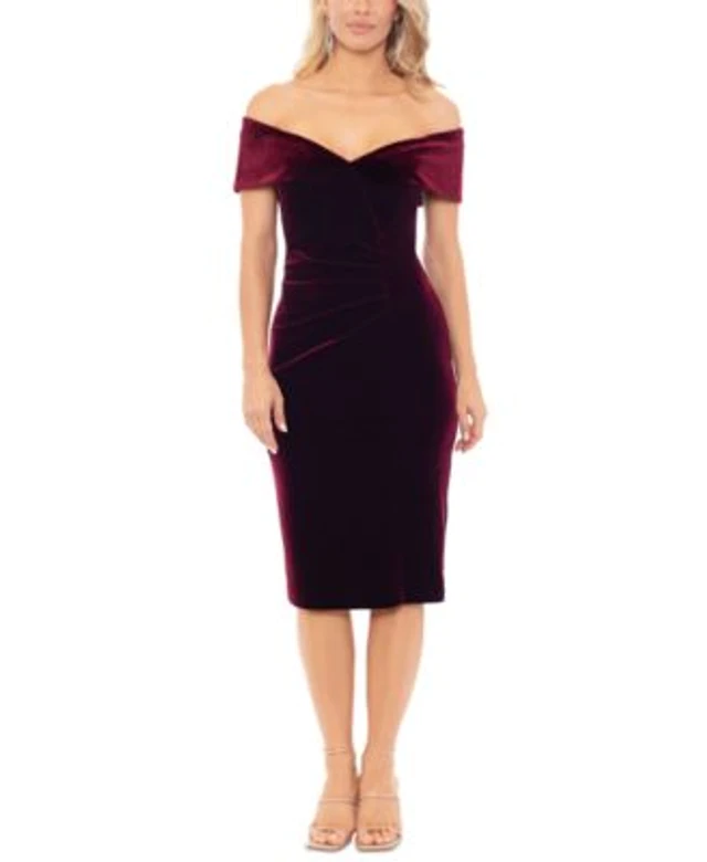 Xscape Womens Velvet Off The Shoulder Ruched Waist Long Dress 2p 16
