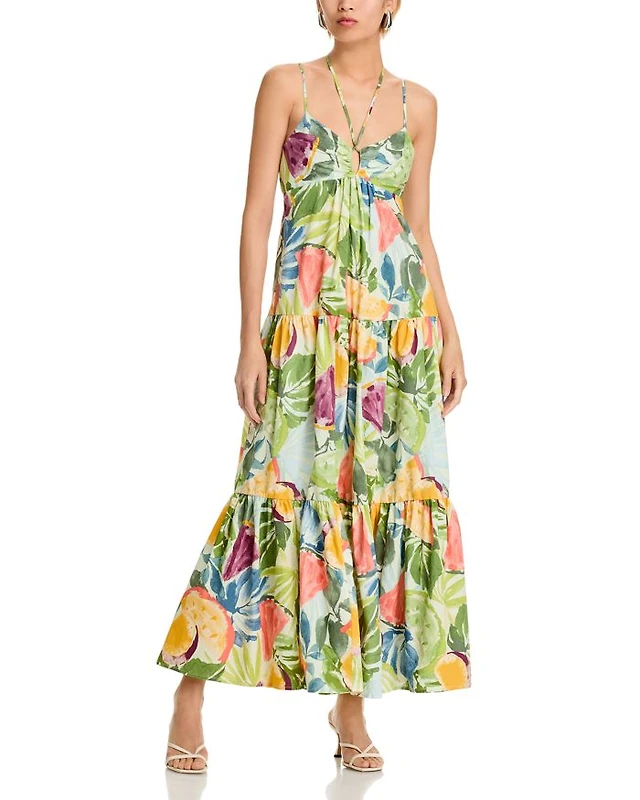 Ray Of Gold Print Silk Maxi Dress