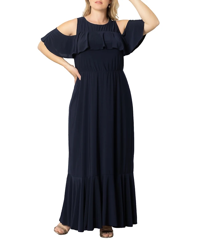 Kiyonna Plus Size Piper Cold Shoulder Maxi Dress