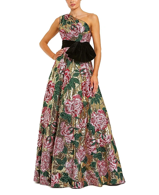 Amri Women's One Shoulder Floral Detail Ruched Gown