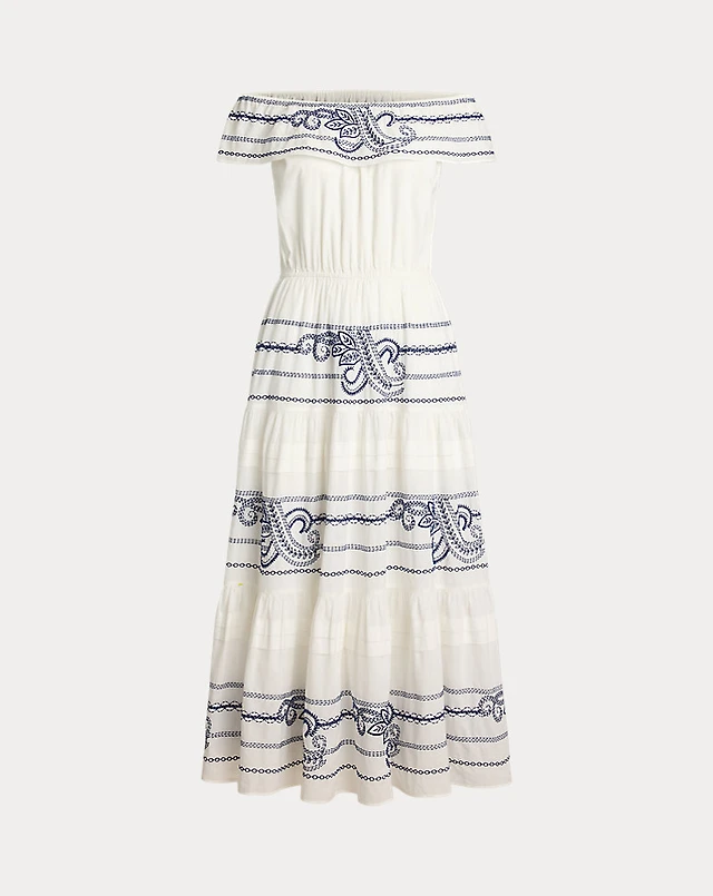 Girls' Off-Shoulder Eyelet Scalloped Dress, Little Kid, Big Kid - Exclusive.