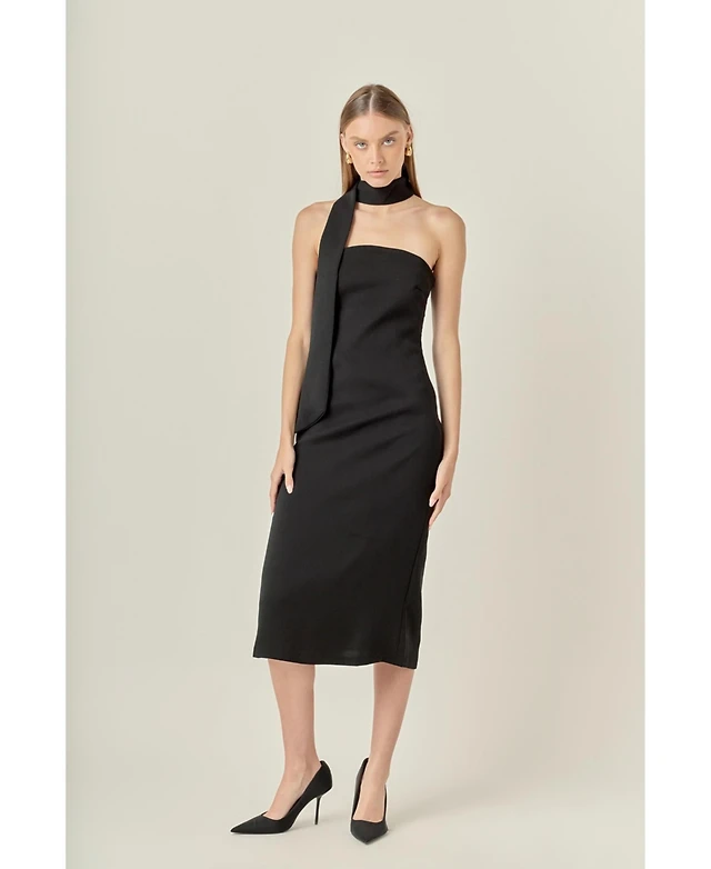 Eloquii Women's Plus Pleated Bodice Bow Detail Dress
