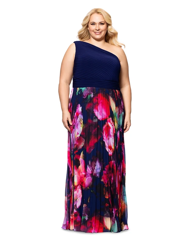 Mac Duggal Women's One Shoulder Beaded Mesh Gown With Flower