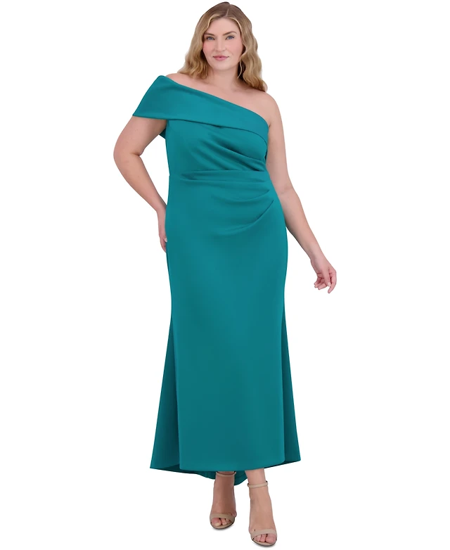 Mac Duggal Women's Gathered One Shoulder Satin Faux Wrap Gown