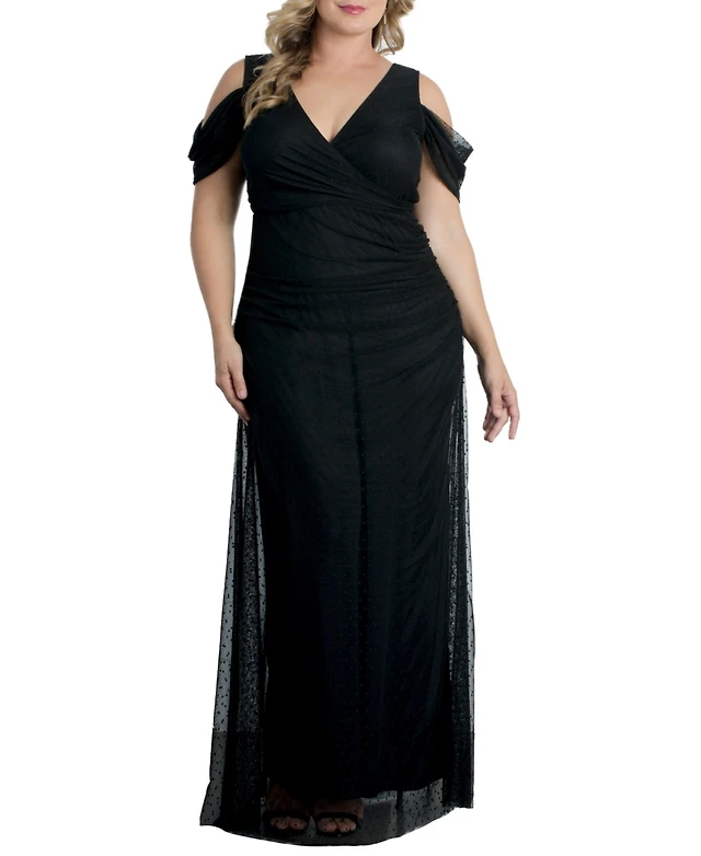 Sl Fashions Plus Flutter-Sleeve Side-Ruched Glitter Gown