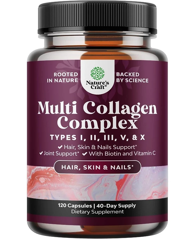 Multi Collagen Complex Capsules, Biotin and Collagen Supplement with BioPerine and Hair Skin and Nails Vitamins, Nature's Craft, 120ct