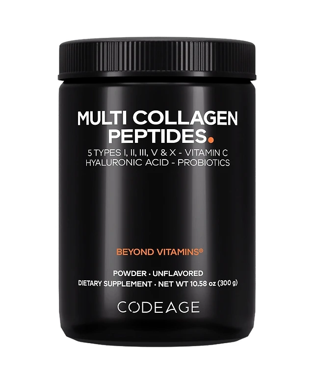 Codeage Multi Collagen Peptides Powder + Probiotics Black Edition, Vitamin C, Hyaluronic Acid Powder Supplement, Grass-Fed, Hydrolyzed, Zero Carbs, Ty