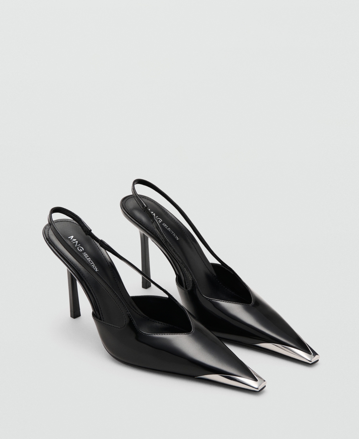 Mango Women's Metallic Toe Cap Leather Heeled Shoes