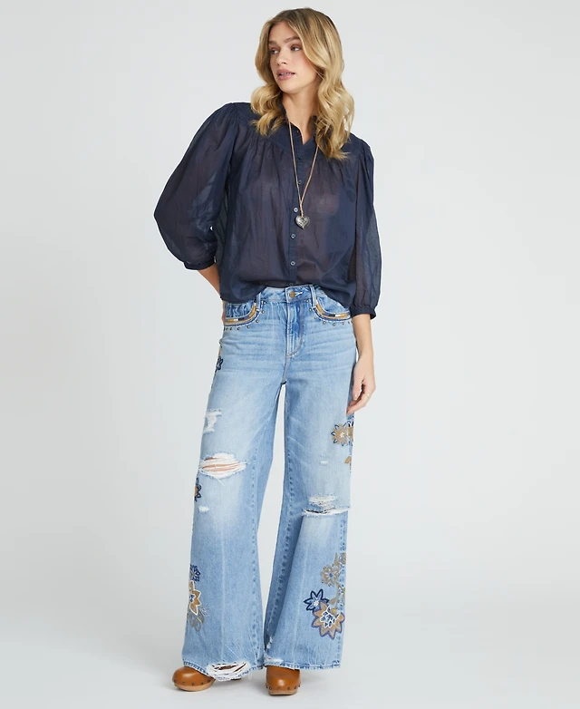 Tribal Women's Audrey Distressed Barrel Stretch Jeans