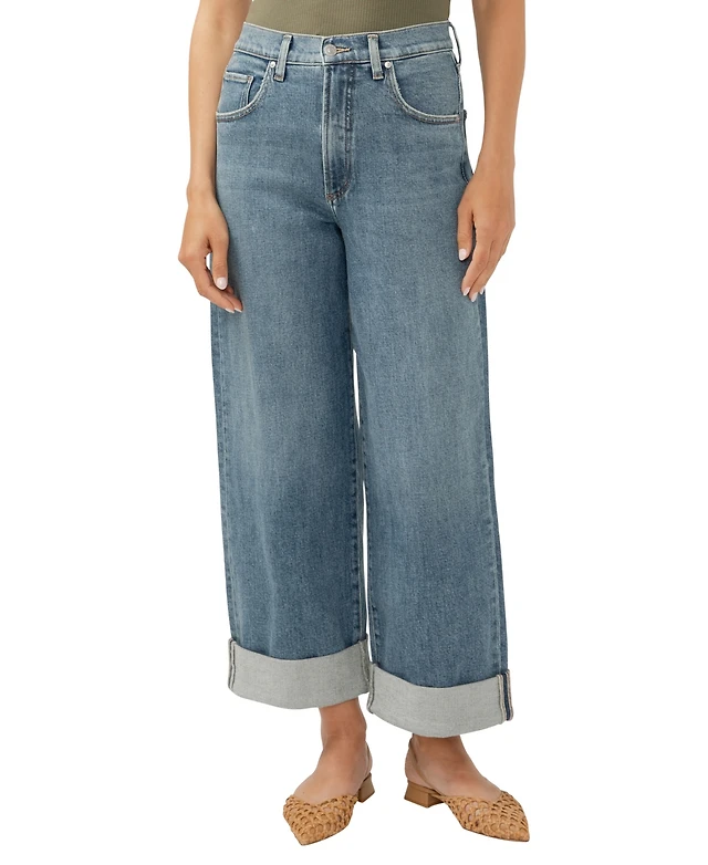 Vervet Women's High Rise Cuffed Wide Leg Jeans