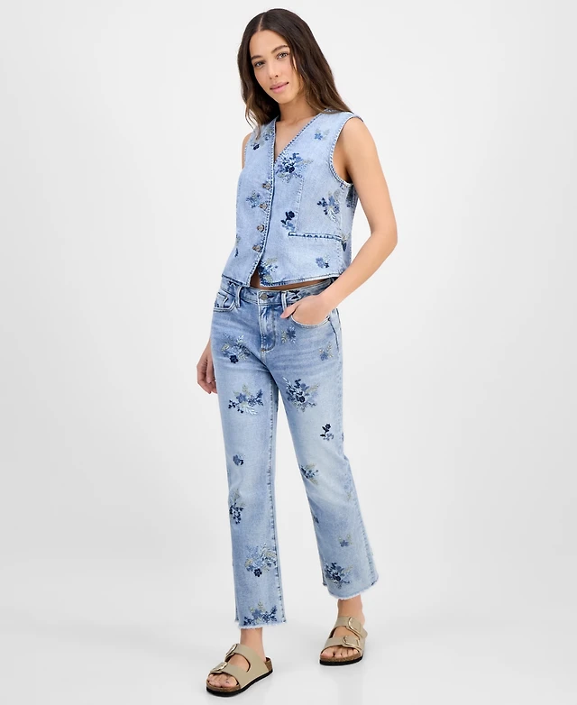 Edikted Women's Mirra Embroidered Flower Low Rise Jeans