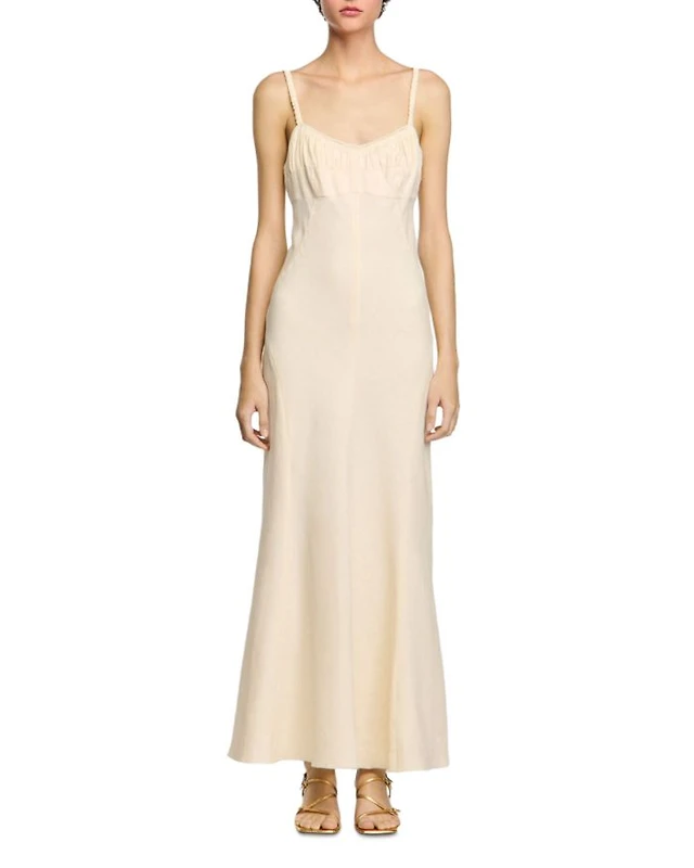 Alma Bordada Ankle Dress Ecru And Chocolate