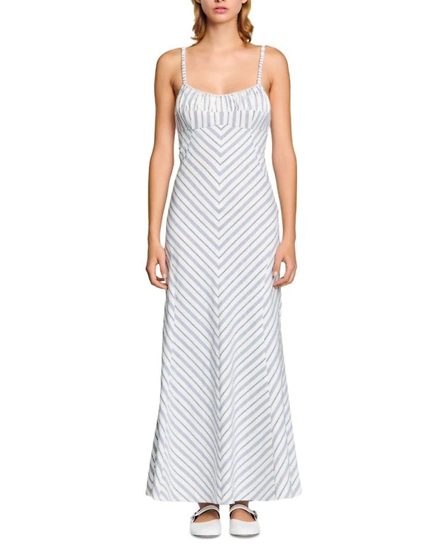Isla Dress Stripe Cotton Silk Poplin Navy