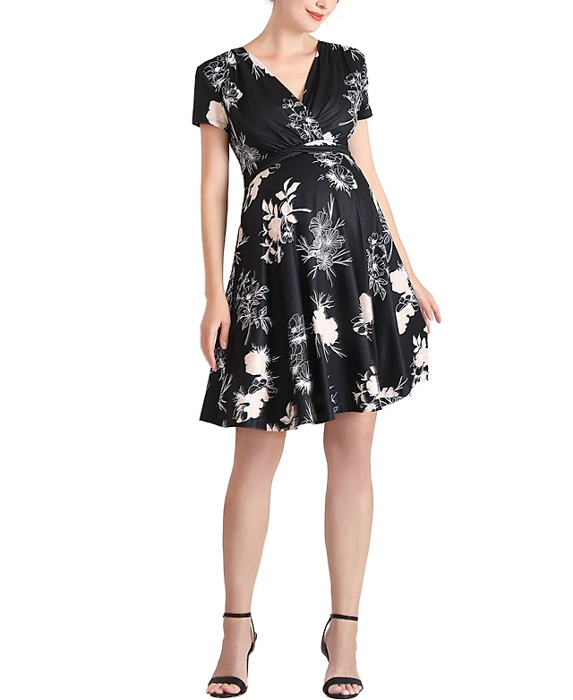 kimi + kai Maternity V-Neck Faux Wrap Nursing Dress