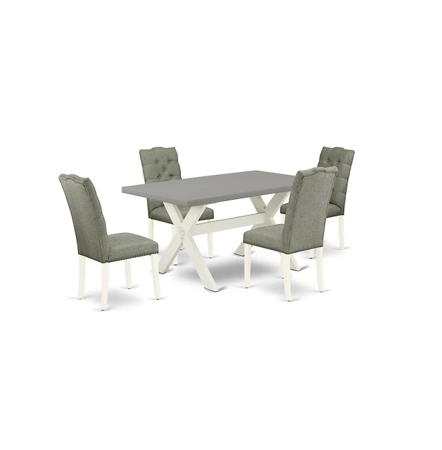 East West Furniture 5-Pc Dining Room Table Set- 4 Parson Chairs with Baby Blue Linen Fabric Seat and Button Tufted Chair Back