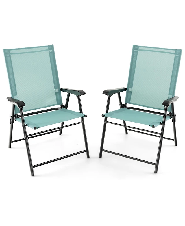 Gymax Set of 2 Patio Dining Chairs Outdoor Armchairs w/ Sturdy Metal Frame