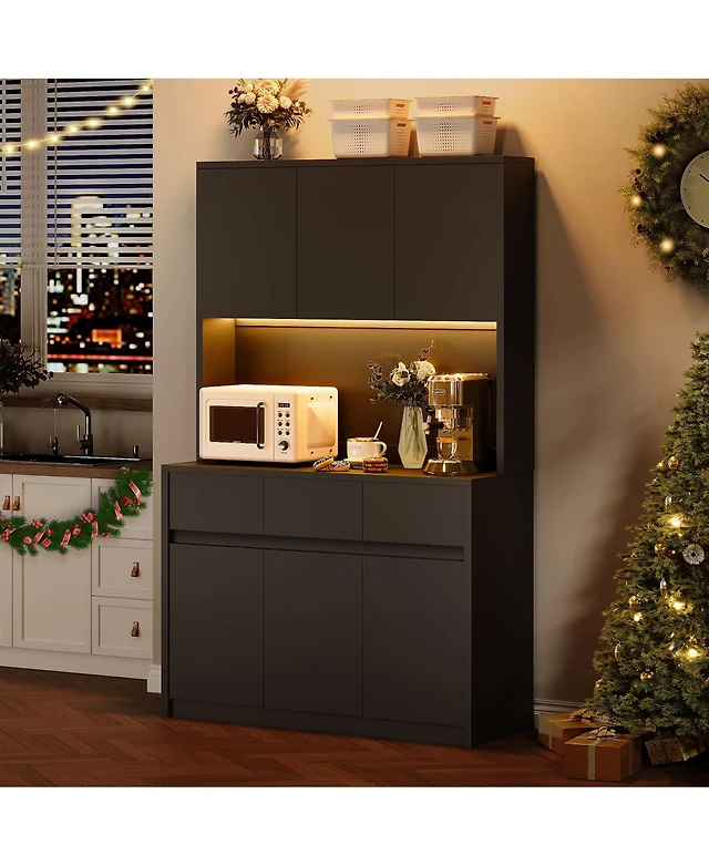 gaomon 70" Kitchen Food Pantry with Charge Station, Led Light,Storage Cabinet