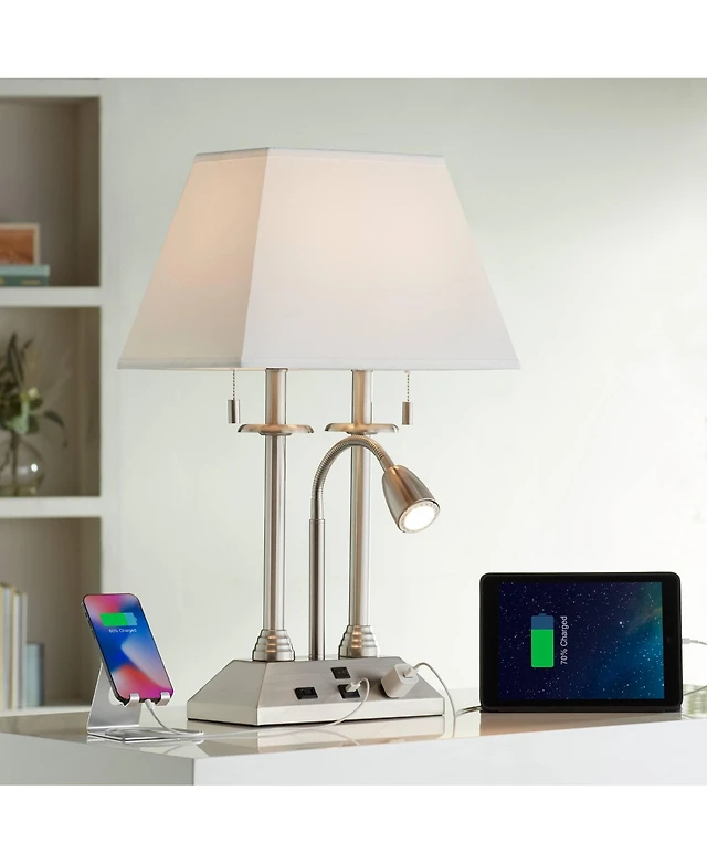 360 Lighting Caper Modern Floor Lamp with Tray Table 60 1/2" Tall Brushed Nickel Usb and Ac Power Outlet Off White Fabric Drum Shade for Living R