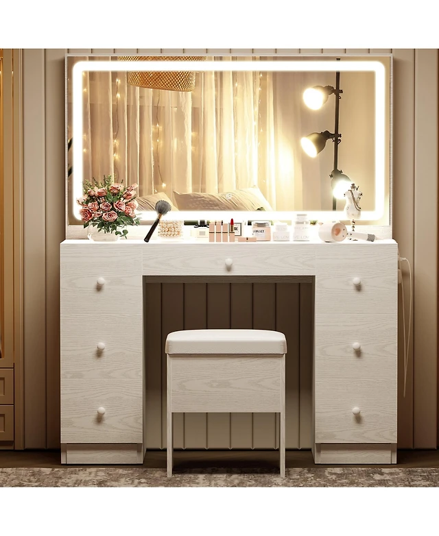 Vanity Set with Lighted Mirror and Stool Power Outlet