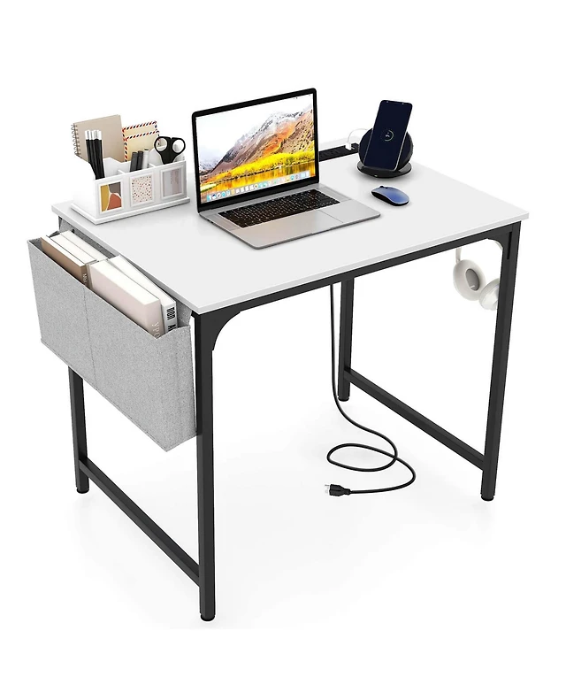 Costway 32" Computer Desk Small with Charging Station Storage Bag & Headphone Hook