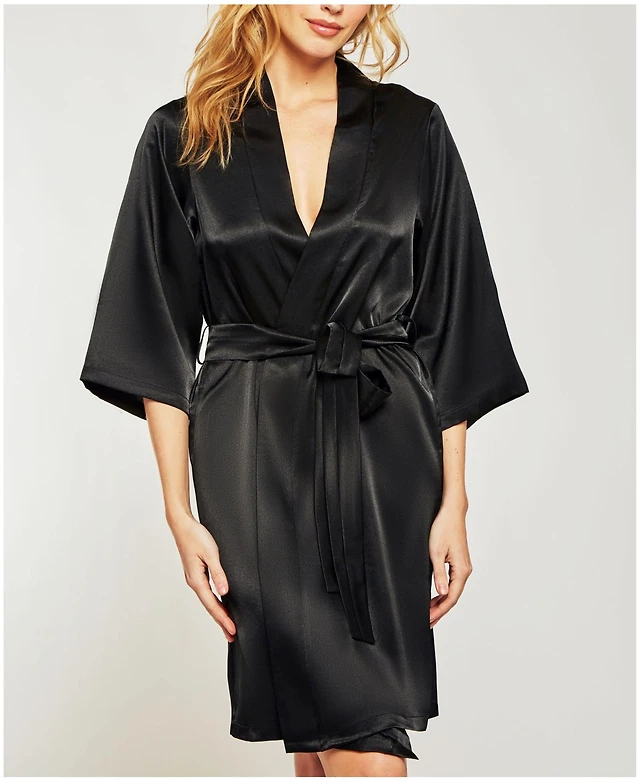 iCollection Women's Marina Lux 3/4 Sleeve Satin Lingerie Robe