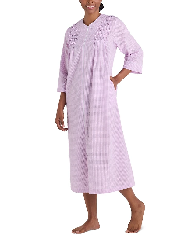 Miss Elaine Women's 3/4-Sleeve Zip-Front Seersucker Robe