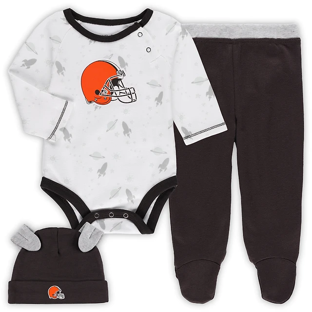 Newborn & Infant White/Brown Cleveland Browns Dream Team Bodysuit Pants & Hat Set