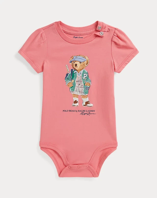 Baby Ribbed Long Sleeve Bodysuit – Beige with Bear Print 🐻