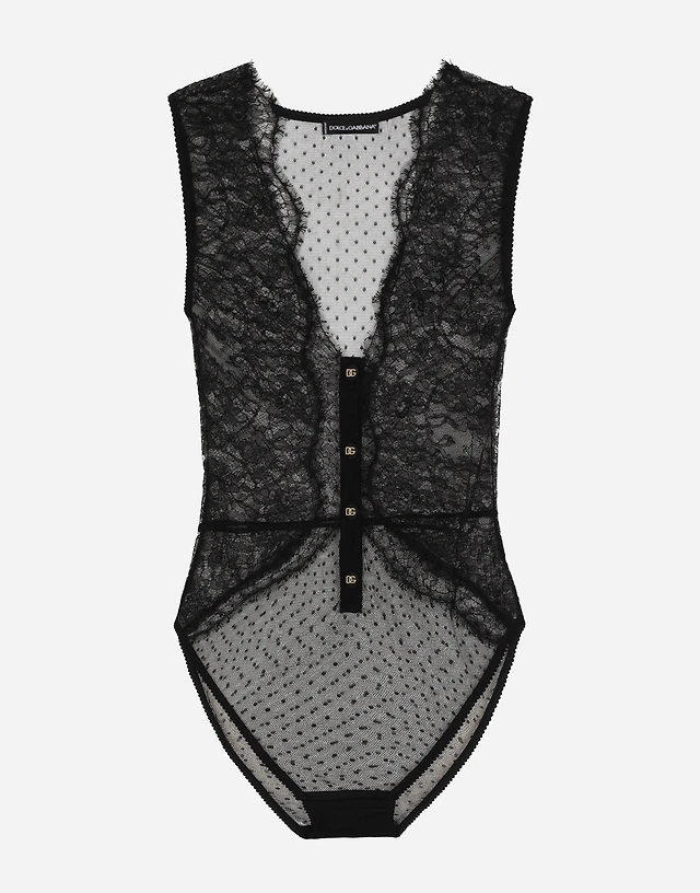 Silk balconette lingerie bodysuit with leopard-print lace details
