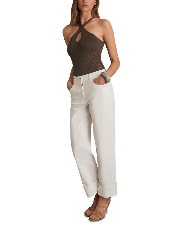 Biker Crepe Jersey Zipped Bodysuit Mocha
